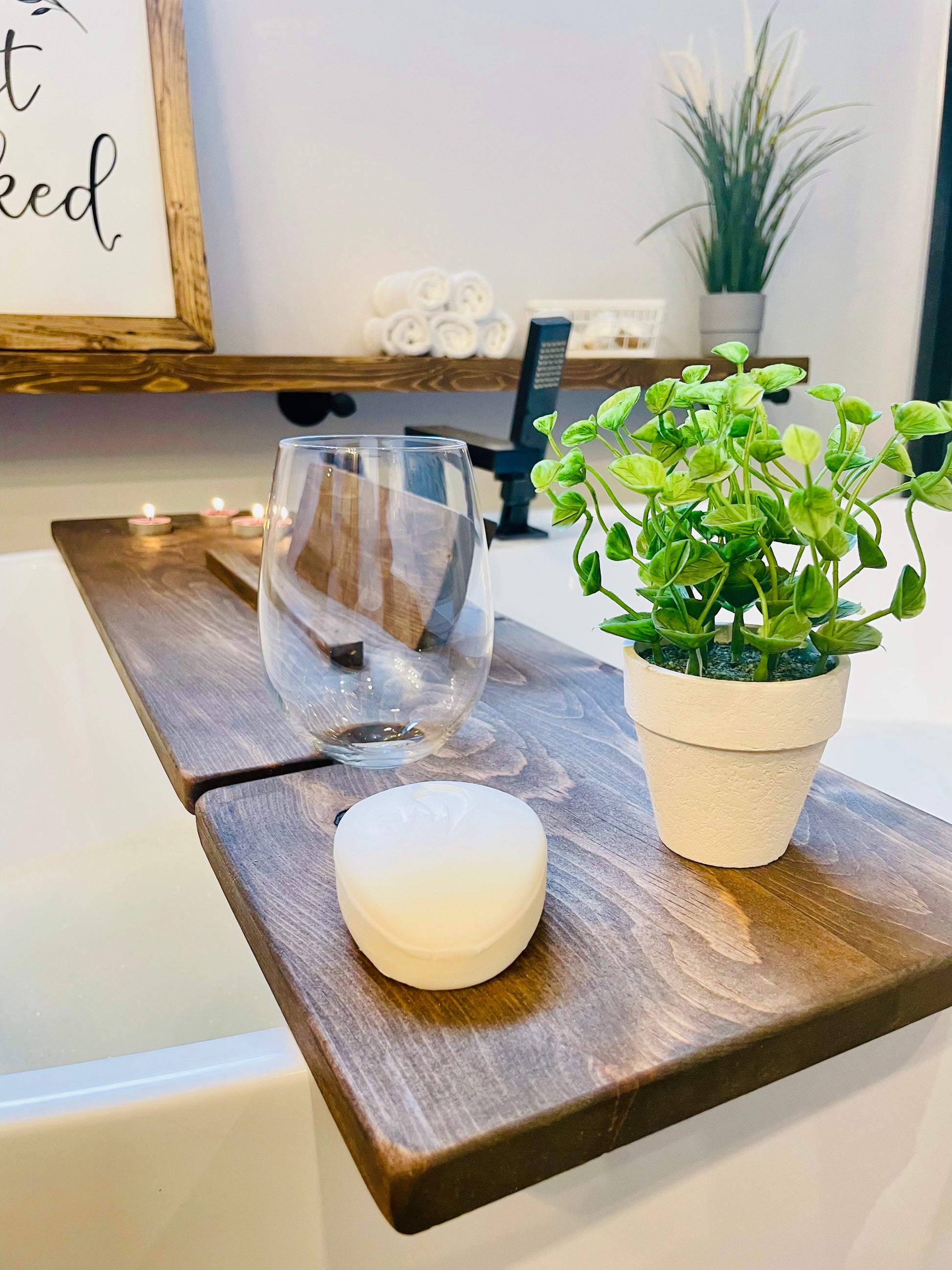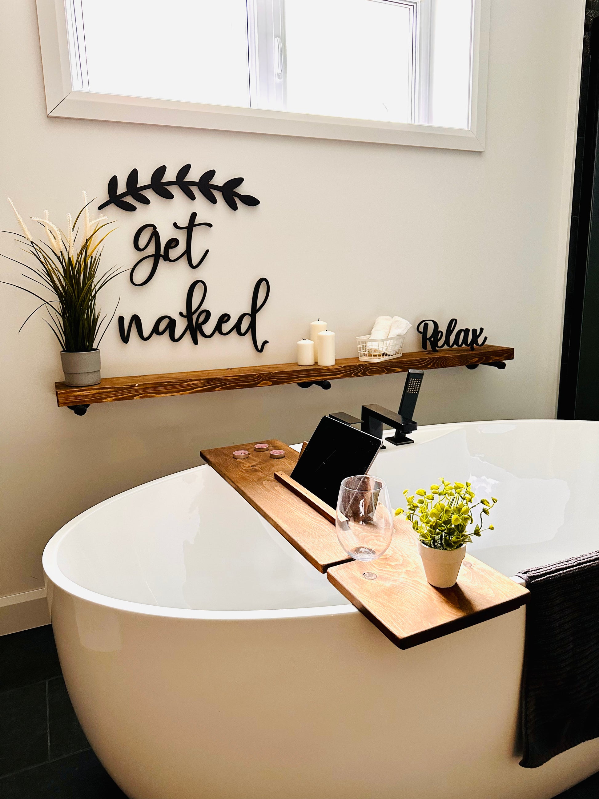 Profitez des moments de détente dans votre bain avec le "Relaxant". Ce pont de bain vous permet d'y placer une généreuse coupe de vin en toute sécurité, un livre ou une tablette. Celui-ci comprend trois espaces encavées afin d'y déposer trois chandelles pour une ambiance relaxante.